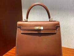 Hermès(爱马仕)Kelly 25cm 马鞍皮 金棕色 金扣 现货