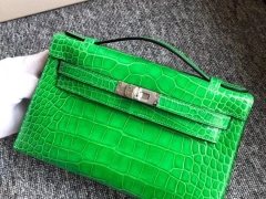 Hermès(爱马仕)Minikelly pochette 22cm Alligator shiny 亮面鳄鱼 仙人掌绿 银扣 现货