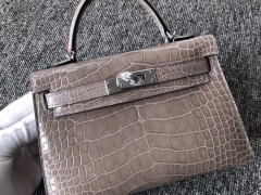 Hermès(爱马仕)Mini kelly ll alligator shiny 亮面鳄鱼ck81 斑鸠灰 Gris T 银扣 顶级手缝 现货