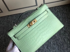 Hermès(爱马仕)Mini kelly pochette 22cm Alligator shiny 亮面鳄鱼 6U 薄荷绿 金扣 现货