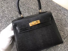 Hermès(爱马仕)Kelly 20cm 大耳朵 蜥蜴皮 Lizard ck89 黑色 金扣 定制款