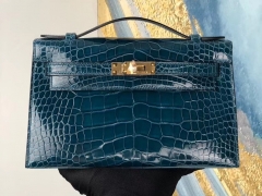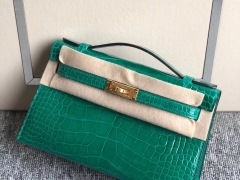 Hermès(爱马仕)Mini kelly pochette 22cm Alligator shiny 亮面鳄鱼 6Q翡翠绿 金扣 现货