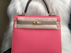 Hermès(爱马仕)Kelly 25cm Epsom 原厂掌纹皮 8w 唇膏粉拼ck18 大象灰 金扣 马蹄印 定制