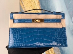 Hermès(爱马仕)Minikelly pochette 7Q 希腊蓝 mykonos 金扣 顶级手缝 手拿包 晚宴包 22cm