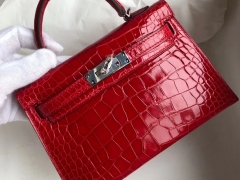 Hermès(爱马仕)Mini kelly ll alligator shiny 亮面鳄鱼 ck95 法拉利红 Braise 银扣 顶级手缝