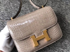 Hermès(爱马仕)Constance 18cm Alligator shiny 亮面鳄鱼 ck81 斑鸠灰 Gris T 金扣 顶级手缝 超美