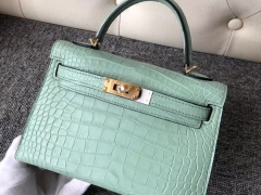 Hermès(爱马仕)Mini Kelly ll Alligator matt 雾面鳄鱼 6U 薄荷绿 金扣 顶级手缝 定制