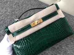 Hermès(爱马仕)Mini kelly pochette 22cm Alligator shiny 亮面鳄鱼 ck67 祖母绿 金扣