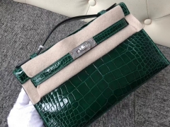 Hermès(爱马仕)Mini kelly pochette 22cm Alligator shiny 亮面鳄鱼 ck67 祖母绿 银扣