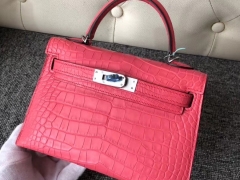 Hermès(爱马仕)Mini Kelly ll Alligator matt 雾面鳄鱼 A5 杜鹃红 银扣 顶级手缝 定制
