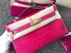Hermès(爱马仕)Mini kelly pochette 22cm Alligator shiny 亮面鳄鱼 E5 桃红 金扣 现货