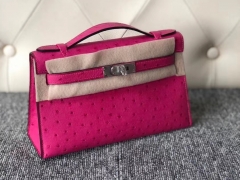 Hermès(爱马仕)Mini kelly pochette 22cm Ostrich kk 鸵鸟 E5 桃粉 银扣 顶级手缝 现货