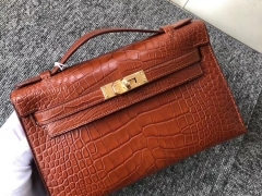 Hermès(爱马仕)Mini kelly pochette 22cm Alligator matt 雾面鳄鱼 棕色 马鞍色 金扣 顶级手缝 现货