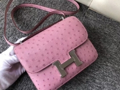 Hermès(爱马仕)Constance 18cm Ostrich kk鸵鸟 浅粉色 银扣 顶级手缝