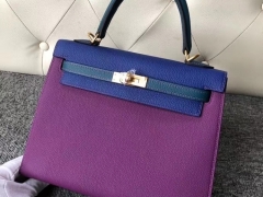 Hermès(爱马仕)kelly 25cm togo 原厂小牛皮 三拼色 金扣 马蹄印 定制