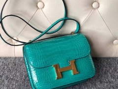 Hermès(爱马仕)Constance 18cm Alligator shiny 亮面鳄鱼 6o 帝王绿 金扣 顶级手缝 现货