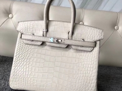 Hermès(爱马仕)Birkin 25cm Alligator matt 雾面鳄鱼 8L 奶油白 Beton 银扣 顶级手缝 定制