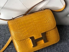 Hermès(爱马仕)Constance 18cm Alligator shiny 亮面鳄鱼 9D 琥珀黄 Ambre 金扣 顶级手缝 现货