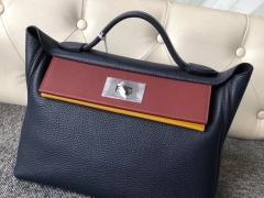 Hermès(爱马仕)2424 2Z 午夜蓝拼色 银扣 特殊定制