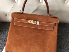 Hermès(爱马仕)Kelly 28cm 麂皮 金棕色 Gold 金扣 顶级手缝 定制