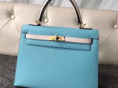 Hermès(爱马仕)Kelly 25cm Eposm 原厂掌纹皮 北方蓝拼奶昔白 金扣 马蹄印 顶级手缝