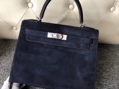 Hermès(爱马仕)Kelly 28cm 麂皮 宝石蓝 银扣 顶级手缝 定制