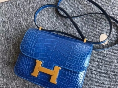 Hermès(爱马仕)Constance 18cm Alligator shiny 亮面鳄鱼 希腊蓝 金扣 顶级手缝 现货