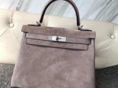 Hermès(爱马仕)Kelly 28cm 麂皮 沥青灰 银扣 顶级手缝 定制