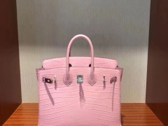 Hermès(爱马仕)Birkin 铂金包 雾面两点汨罗鳄 5P樱花粉 顶级工艺 蜡线全手工 银扣 25cm