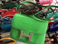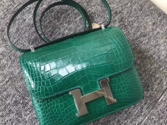 Hermès(爱马仕)Constance 空姐包 Alligator shiny 亮面鳄鱼 6Q 翡翠绿 银扣 18cm 现货