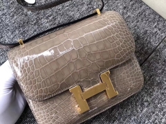 Hermès(爱马仕)Constance 空姐包 Alligator shiny 亮面鳄鱼 ck81 斑鸠灰 金扣 18cm 现货
