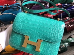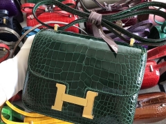 Hermès(爱马仕)Constance 空姐包 18cm Alligator shiny 亮面鳄鱼 6o 帝王绿 金扣 现货