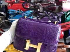 Hermès(爱马仕)Constance 空姐包 18cm Alligator shiny 亮面鳄鱼 9G 紫水晶 金扣 现货