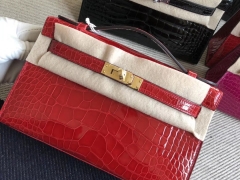 Hermès(爱马仕)Minikelly pochette 22cm 亮面鳄鱼 ck95 法拉利红 Braise 金扣 手拿包 晚宴包