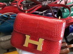 Hermès(爱马仕)Constance 空姐包 18cm Alligator shiny 亮面鳄鱼 ck95 法拉利红 金扣 现货