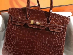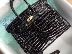 Hermès(爱马仕)Birkin 25cm Crocodile shiny 亮面鳄鱼 ck89 黑色 Noir 金扣 拱珠皮 顶级手缝 现货