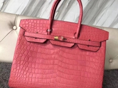 Hermès(爱马仕)Birkin 铂金包 雾面鳄鱼 A5 杜鹃红 金扣 顶级手缝 35cm 现货