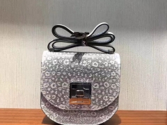 Hermès(爱马仕)Mimi Constance 迷你空姐包 亮面框框美洲鳄 J5天方夜谭粉紫 蜡线全手工 银扣 14cm