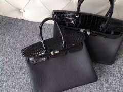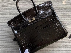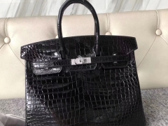 Hermès(爱马仕)Birkin25cm Crocodile shiny 亮面鳄鱼 ck89 黑色 Noir 银扣 拱珠皮 顶级手缝 现货