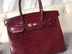 Hermès(爱马仕)Birkin 铂金包 Porosus shiny 亮面澳洲湾鳄 F5 勃艮第酒红 金扣 30cm