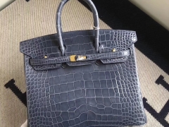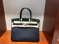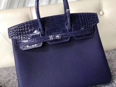 Hermès(爱马仕)Birkin 铂金包 M3 墨水蓝墨水蓝鳄鱼 银扣 定制款 25cm