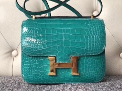 Hermès(爱马仕)Constance 空姐包 Alligator shiny 亮面鳄鱼 6o 帝王绿 金扣 18cm 超美现货
