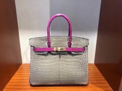 Hermès(爱马仕)Birkin 铂金包 Porosus shiny 亮面澳洲湾鳄 J5 天方夜谭粉紫 金扣 30cm