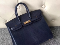 Hermès(爱马仕)Birkin 铂金包 Lizard 进口亮面蜥蜴 7K 宝石蓝 金扣 25cm 现货