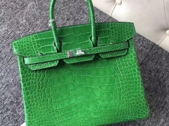 Hermès(爱马仕)Birkin 铂金包 亮面框框美洲鳄 1L仙人掌绿 顶级工艺 蜡线全手工 银扣 25cm