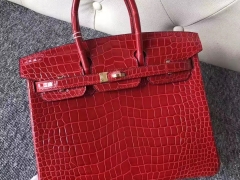 Hermès(爱马仕)Birkin 铂金包 亮面澳洲湾鳄 ck95 法拉利红 Braise 金扣 25cm