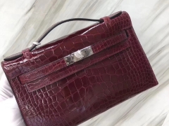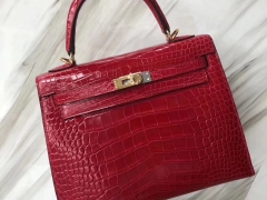 Hermès(爱马仕)Mini Kelly 亮面框框美洲鳄 F5勃艮第酒红 顶级工艺 蜡线全手工 银扣 22cm