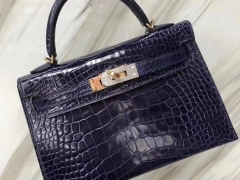 Hermès(爱马仕)Minikelly ll Alligator shiny 亮面鳄鱼 m3 墨水蓝 金扣 超美现货