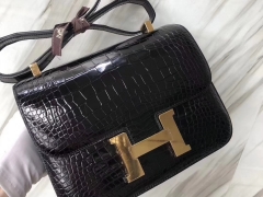 Hermès(爱马仕)Constance24cm Alligator shiny 亮面鳄鱼 ck89 黑色 noir 金扣 现货