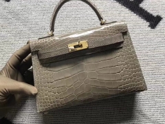 Hermès(爱马仕)minikelly 亮面鳄鱼皮 大象灰 金扣 2代